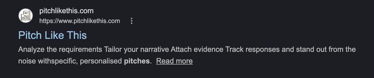 But its not. When I query “pitch i like this” in google, that’s when google decides to rank my website first - I don’t know where the I is coming from. Maybe that “pitch like this” alone is too crowded already.