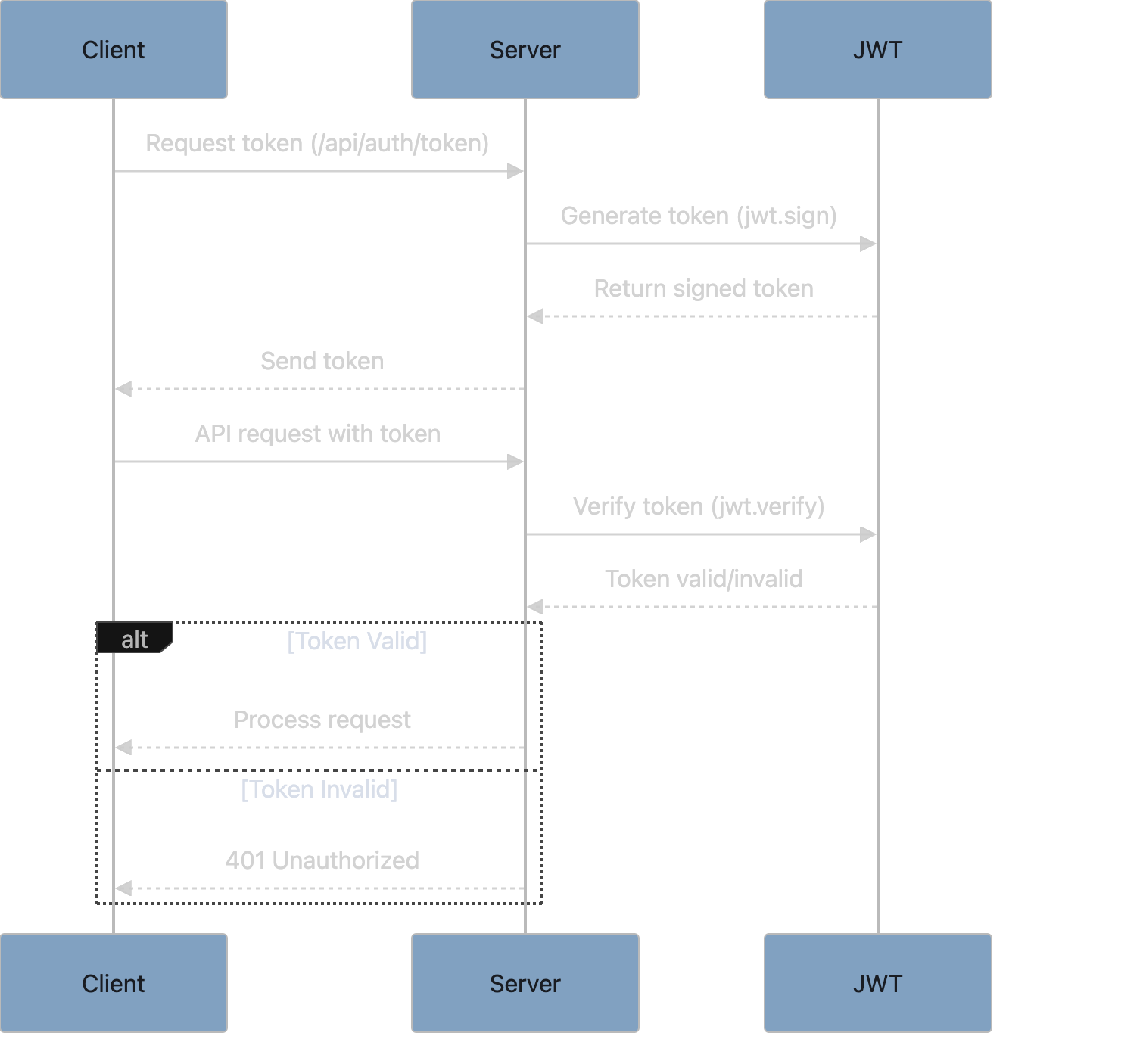 - If valid, the Server processes the API request otherwise returns a 401 unauthorised error