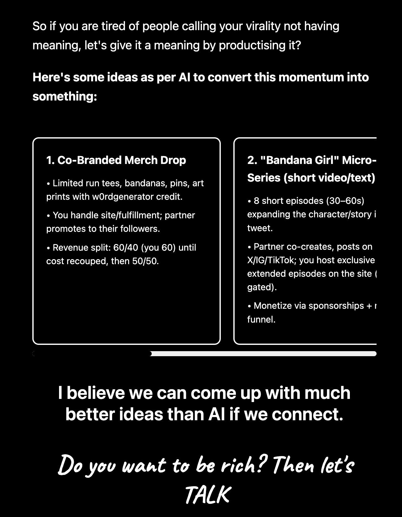 - And the CTA was my X profile - where one can check for authenticity and DM